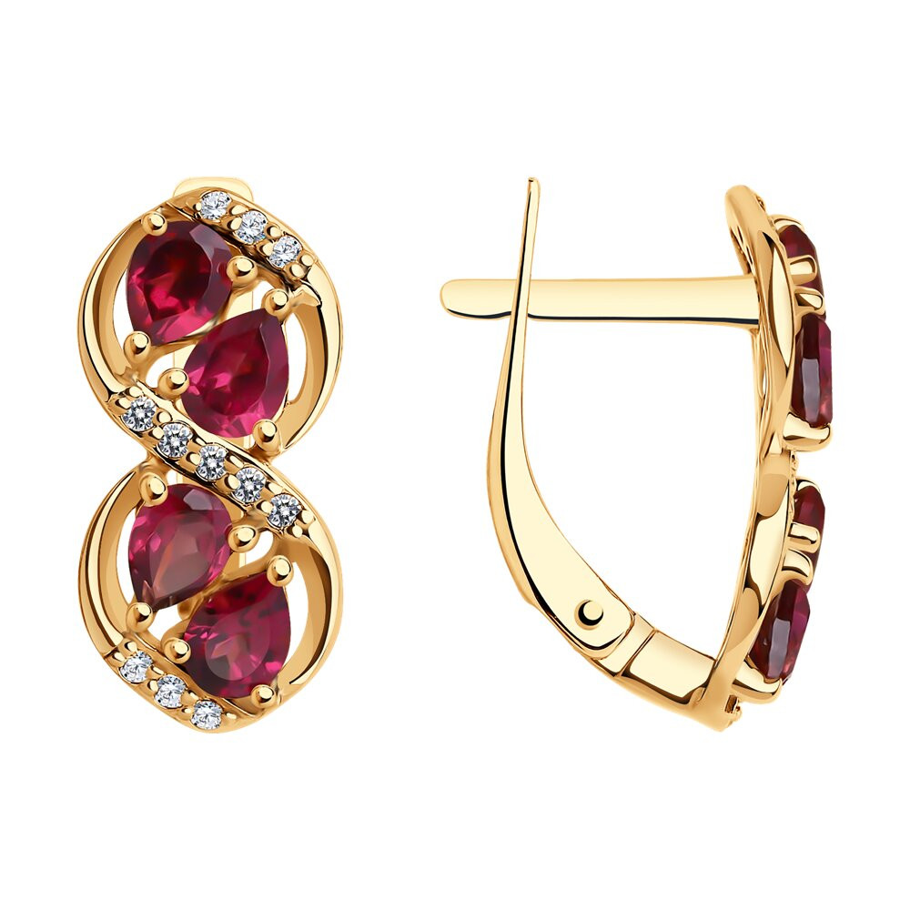 Серьги из красного золота с родолитами и фианитами